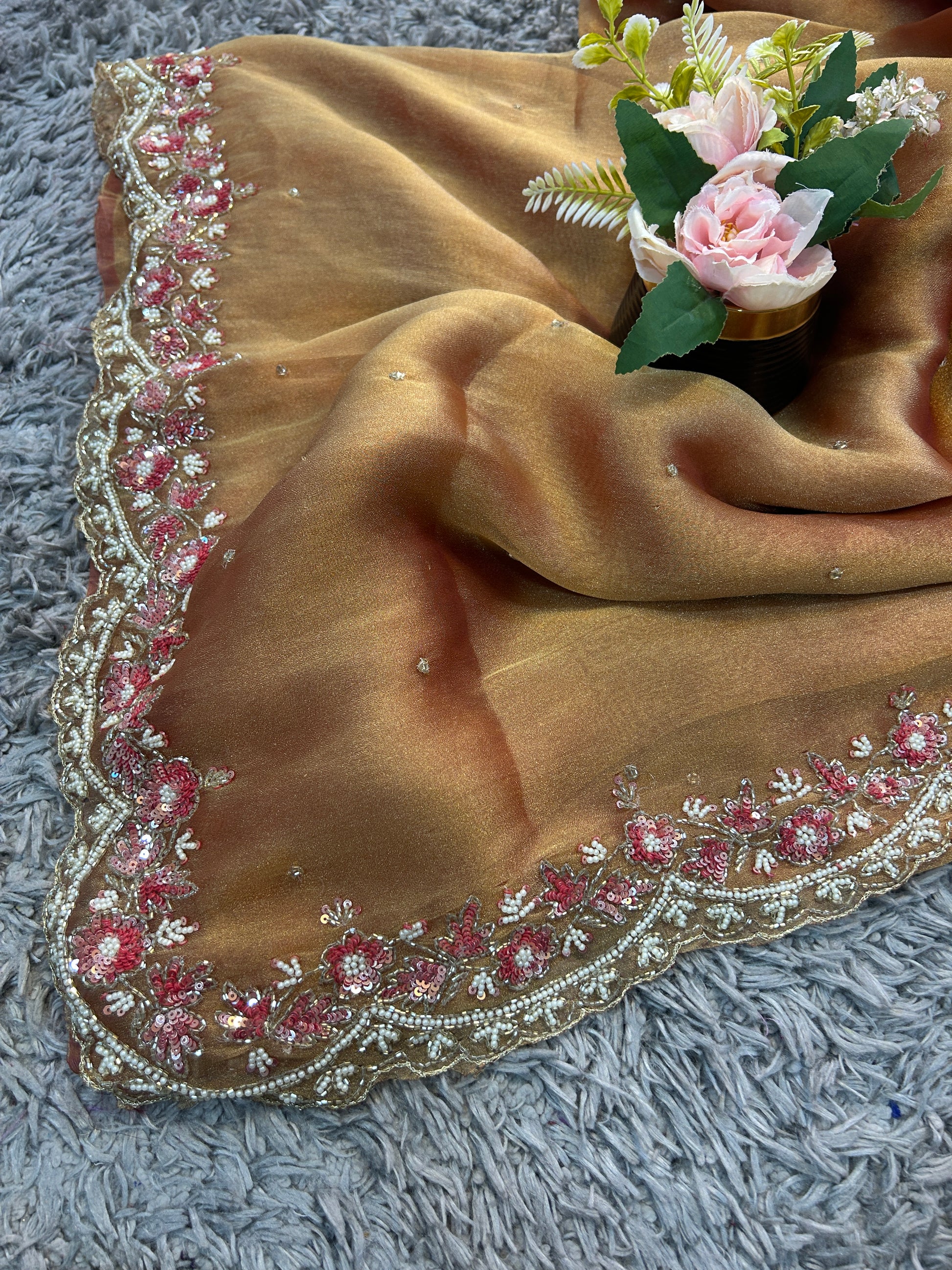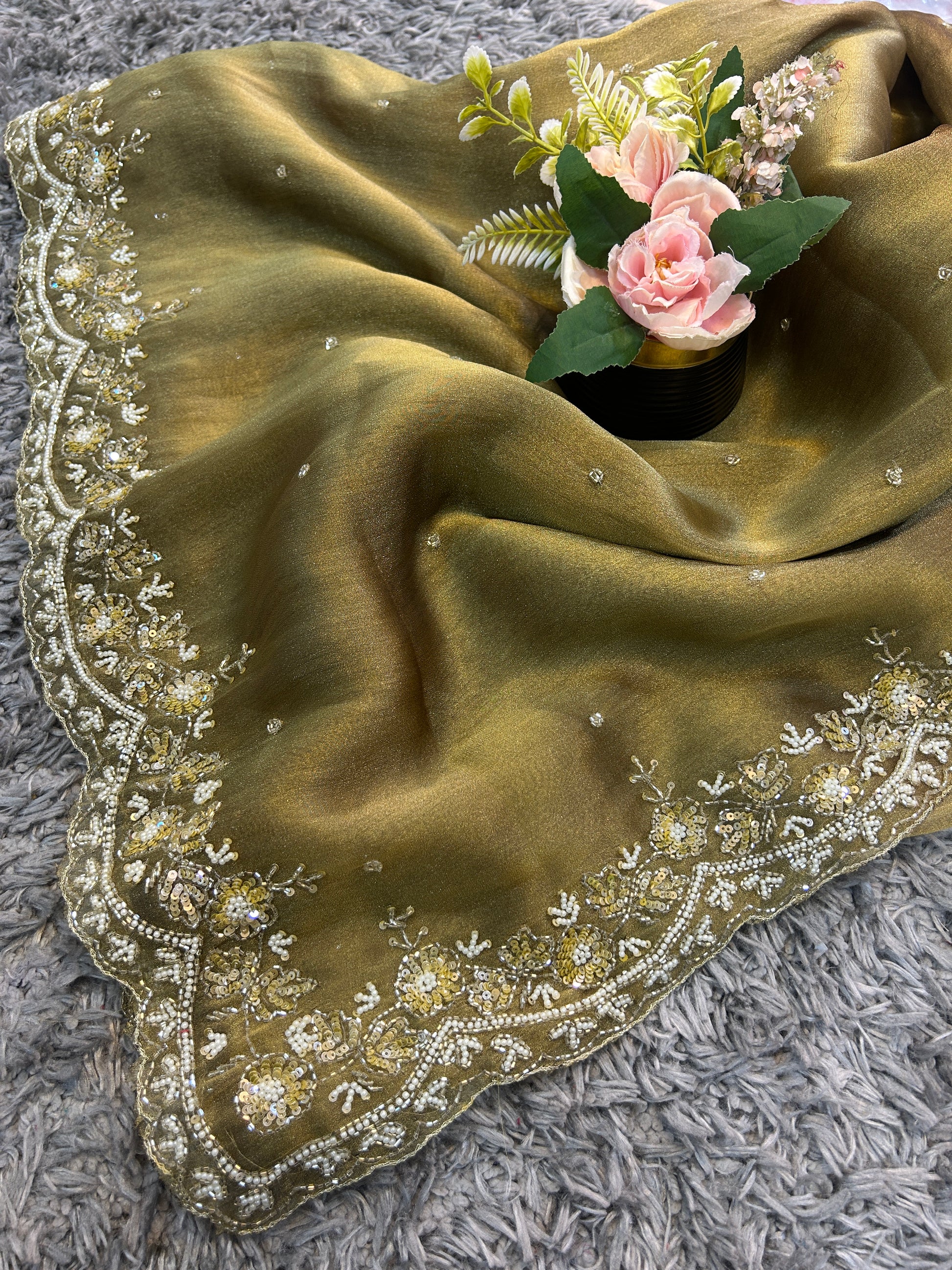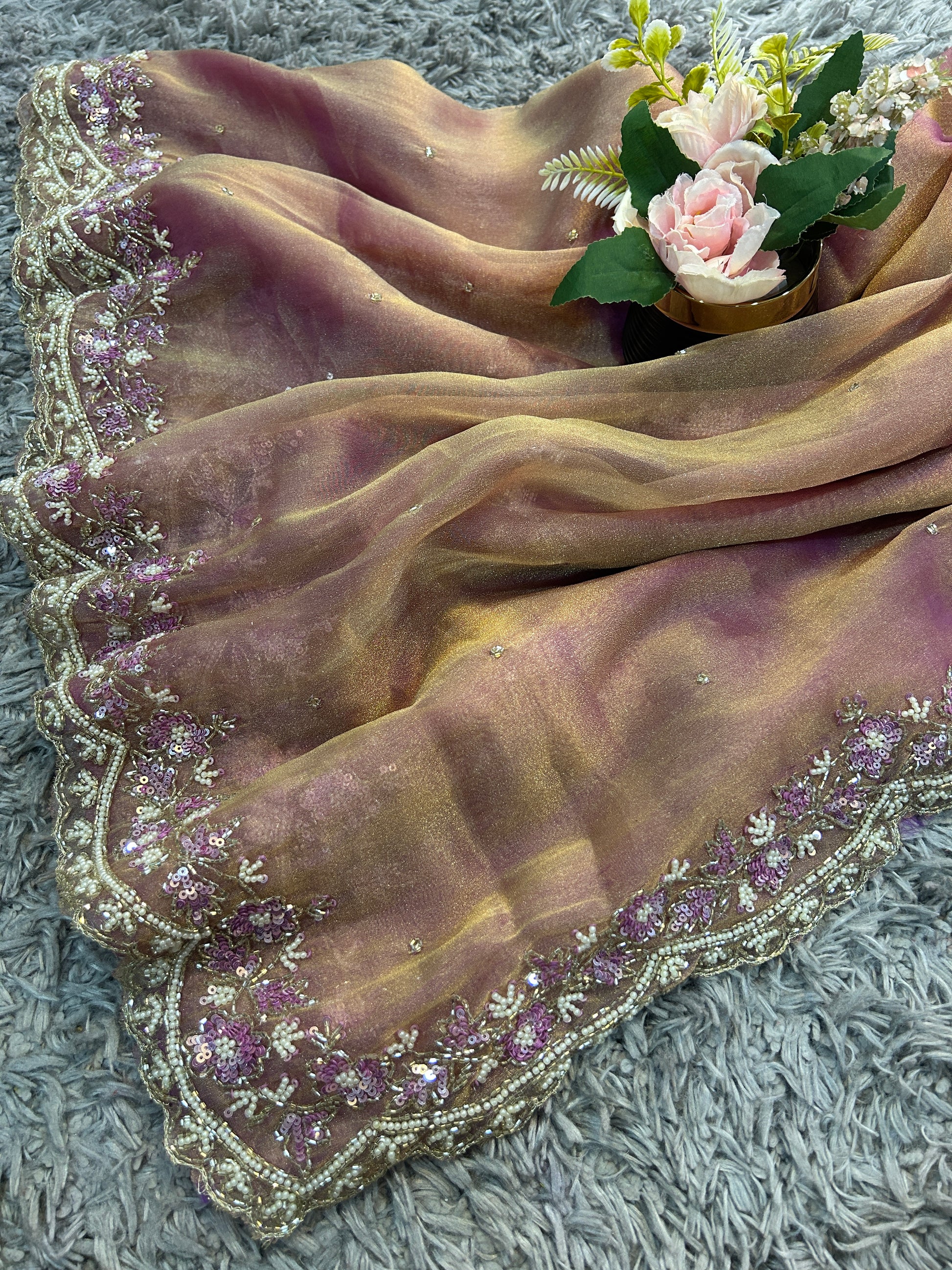 Elevate your style with the Jhalak Premium Tissue Saree — where sheer luxury meets timeless tradition. Crafted from exquisite premium-tissue fabric, this saree drapes with a luminous glide, softly catching the light to reveal its subtle shimmer.