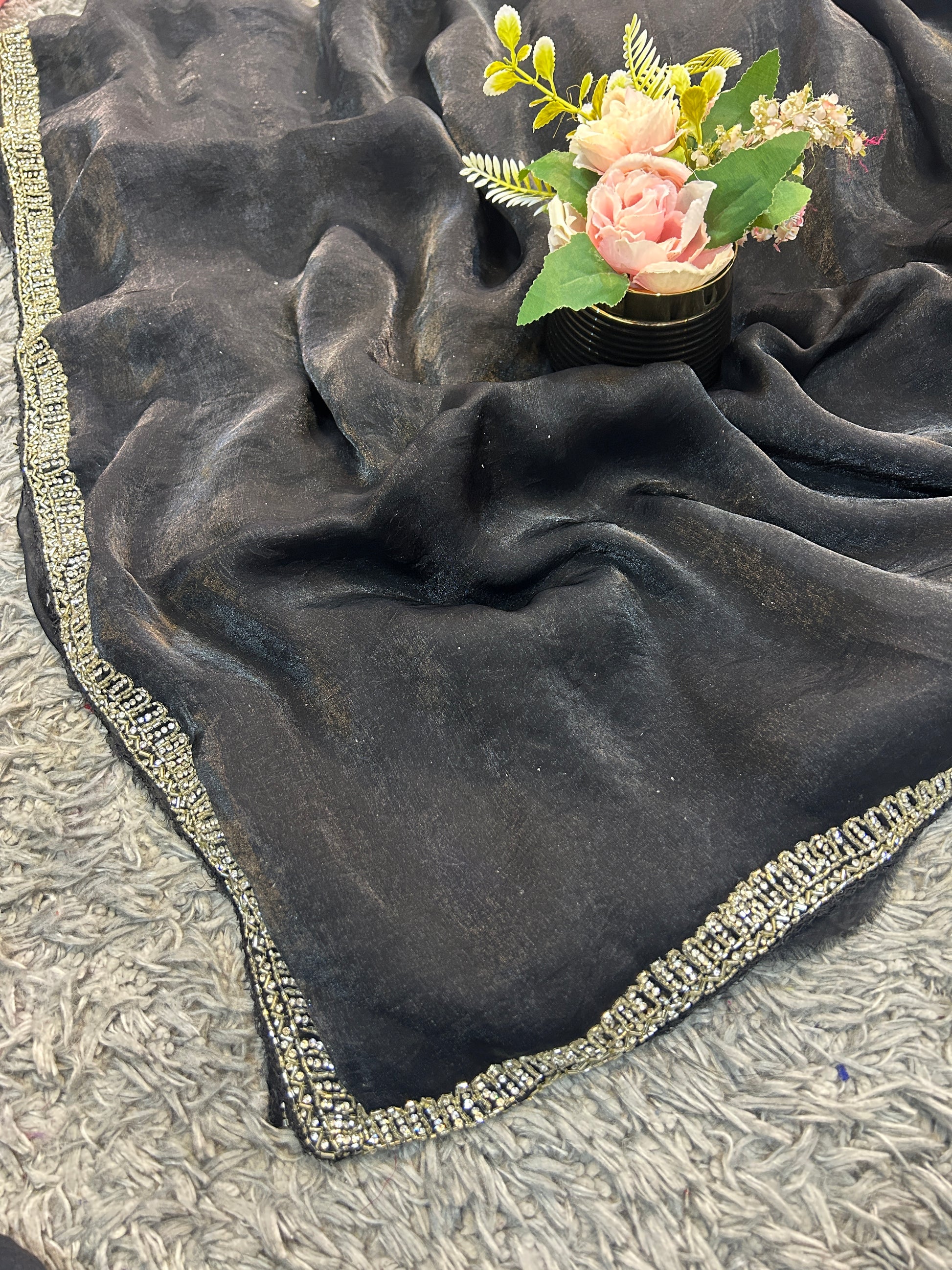 Meera Velvet Satin Saree with Handcrafted Cutdana & Zardosi Embroidery
