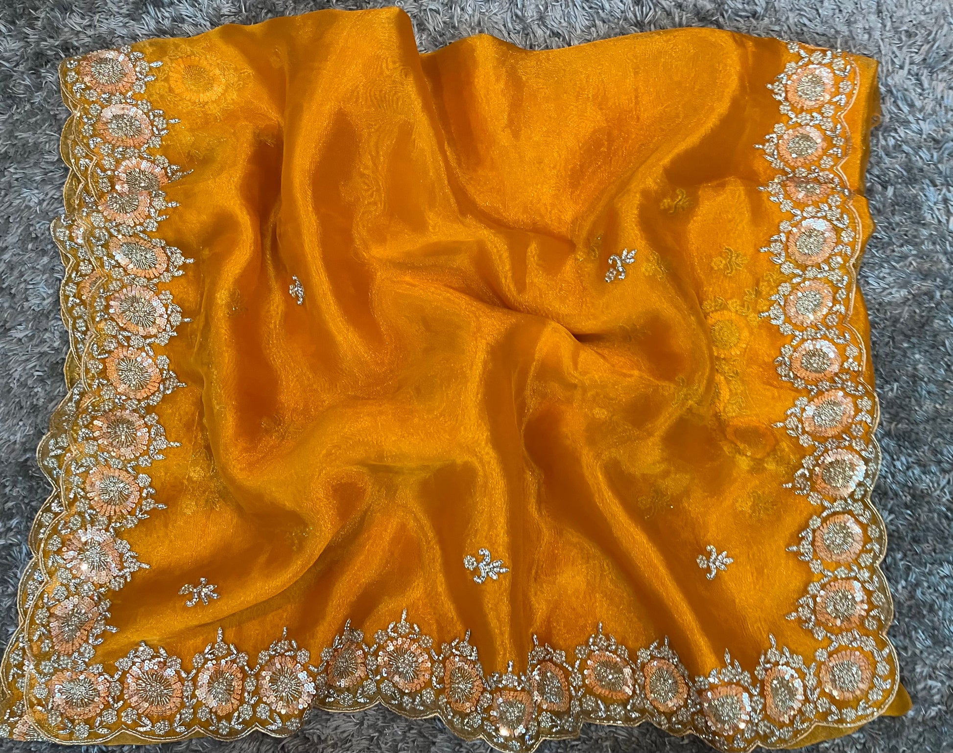 Because it balances elegance with wearability. The premium tissues give a luxe feel; the organza ensures graceful movement; and the hand-work ensures the piece isn’t just another saree but one with character and presence.