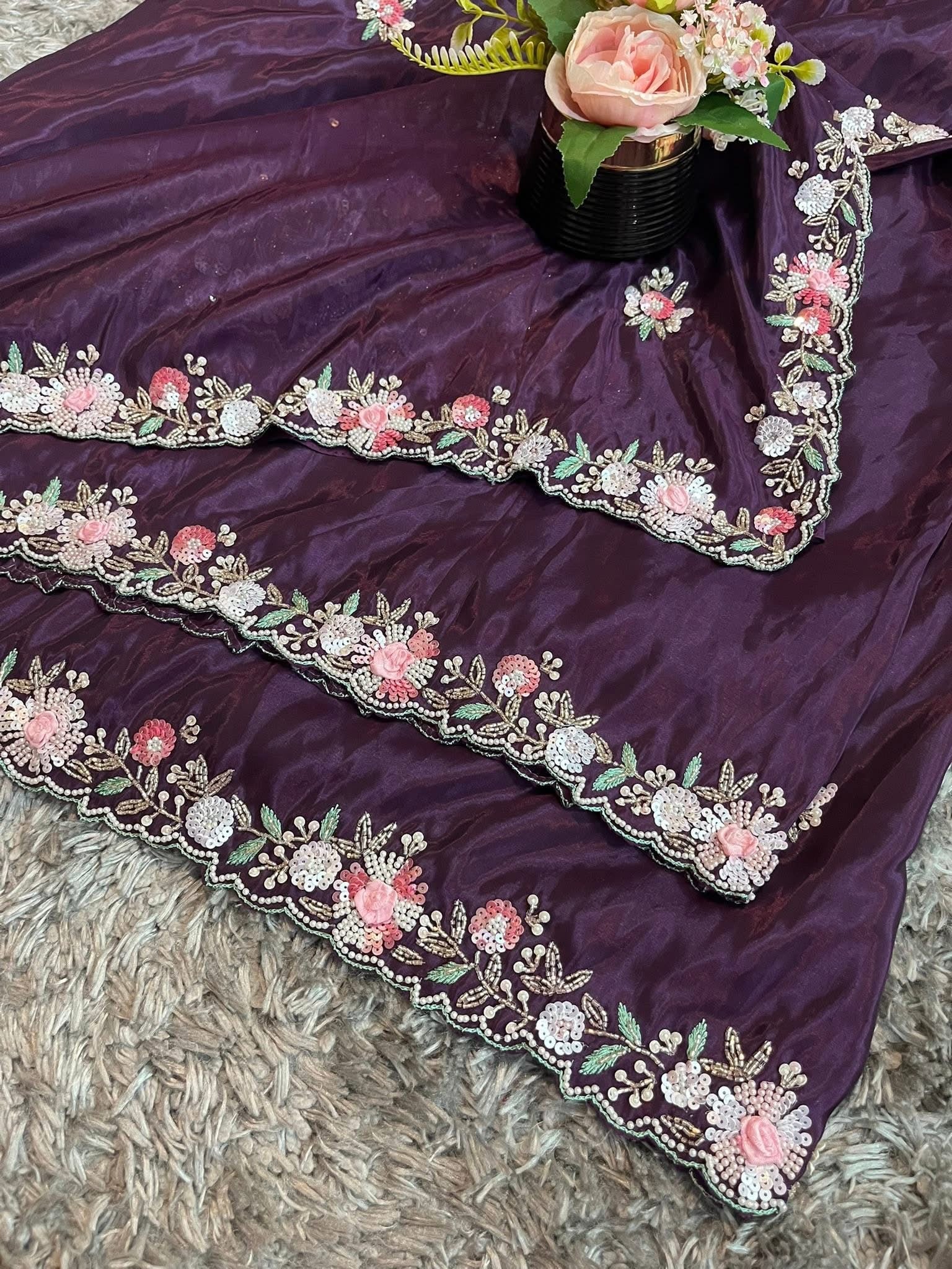 Pure Crape Saree with exclusive handwork and heavy blouse piece