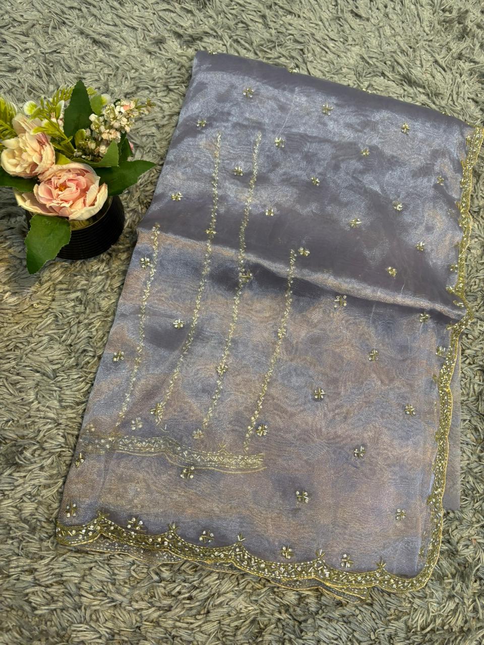 “Your go-to viral masterpiece — tissue-organza shimmer, hand-worked floral buttas, endless colour choices.”
