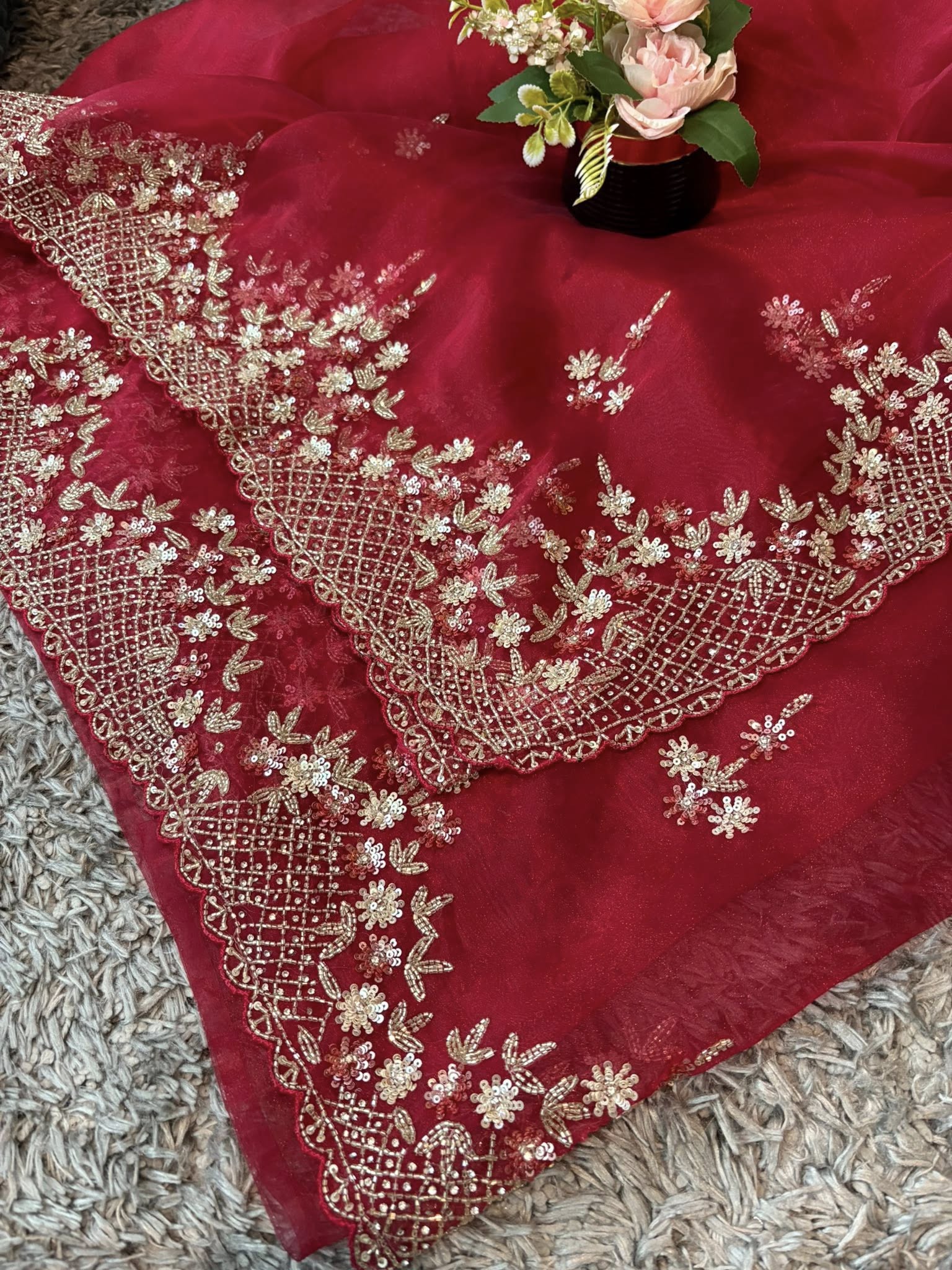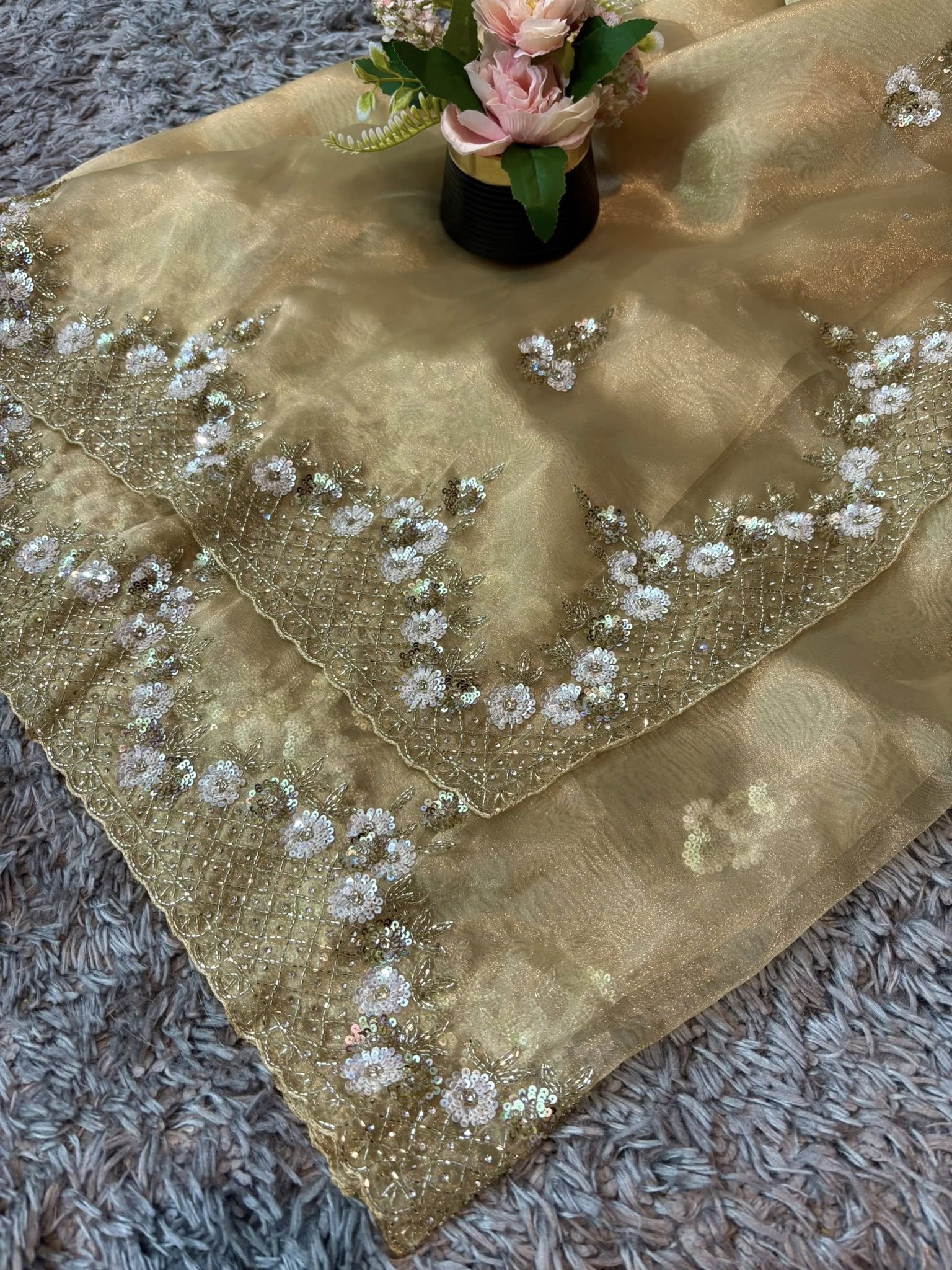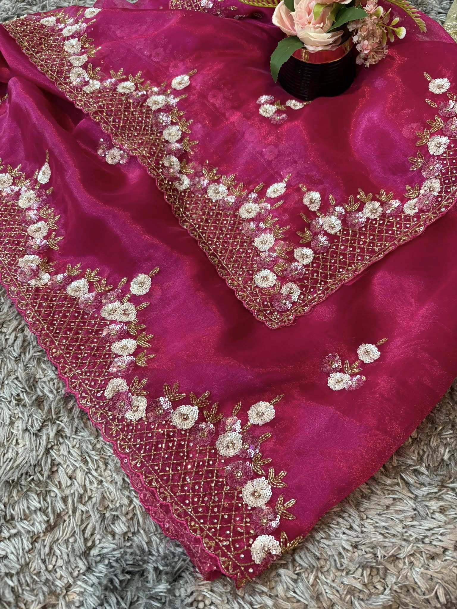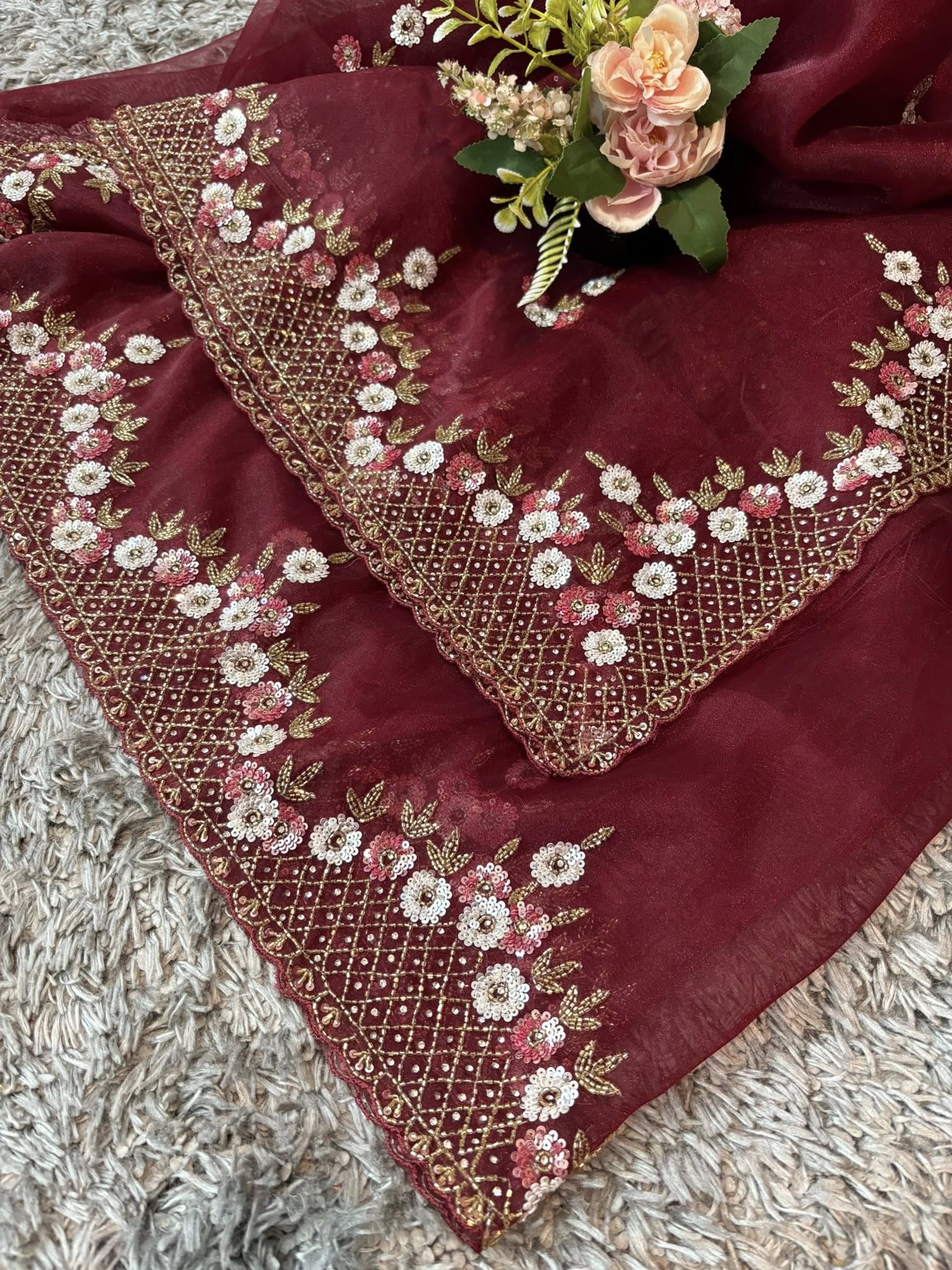 Discover the elegance of the Tissue Organza Saree with Triangle Motif from Vilolika Creation — a flawless blend of shimmering tissue and crisp organza fabrics, beautifully adorned with intricate hand-worked triangle motifs. This saree drapes effortlessly and adds a touch of modern geometry to traditional grace, making it ideal for weddings, festive occasions or a standout event look. Available in a rich palette of colors and meticulously crafted, it’s your go-to for timeless elegance with a contemporary edge.